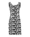 Multi-purpose dress with geometrical design inspired by the 70's, crafted from abstract printed satin for a luxuriously silky feel. Wear it on hot summer days, for stylish party-going, or everyday wear with a light sweater or jacket. Slightly loose-fitting, or add a black belt to emphasize the waistline. Lined through the body in stretch lining for comfort. High neckline and relaxed collar makes it comfortable and universally flattering.