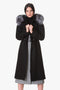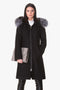 A classic coat featuring fashion-forward dropped shoulders. The perfect coat for everyday. Two-way front zipper for comfortable walking or sitting in a car. Easy-slide J-pockets with contrasting leather piping. Detachable Rex Rabbit fur collar can be worn open or closed on very cold days, or removed for warmer times.